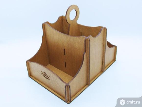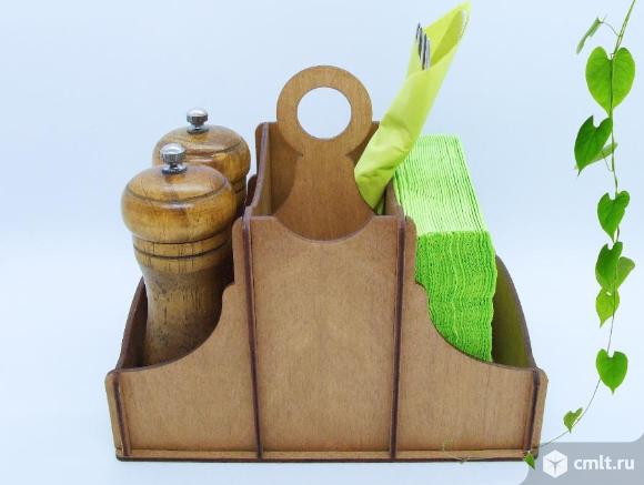 Функциональная и элегантная настольная подставка 3 в 1: салфетница, отделение для столовых приборов и отсек для специй.