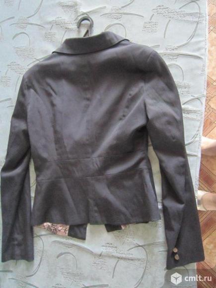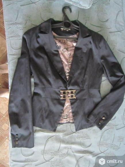 Пиджак --темно-синего цвета, длина пиджака --58 см. длина рукава -64 см.приталенный. длина до талии--40 см. покрой--"подкройные бочка".застежка --оригинальная бляшка.в отличном состоянии