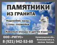 ООО "Оникс": магазины ритуальных услуг в Волосово и в Гатчинском районе. Памятники, ограды, художественная ковка