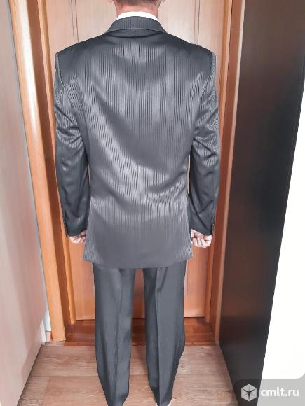 Продаю костюм в отличном состоянии,одевался два раза на три часа.Очень выделяющаяся расцветка,с отливом серебра.Сделана химчистка,после неё не одевался.В комплект входит пиджак,брюки и галстук.Производство Москва.Состав 55% шерсть,45% полиэстер.Размер 48,рост 170.