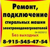 Стиральных машин, электроводонагревателей ремонт, подключение. Без выходных.