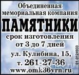 Перейти к актуальным объявлениям рубрики Ритуальные услуги. Памятники. Объединенная мемориальная компания