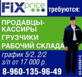 Продавцы-кассиры, грузчики, рабочий склада требуются FixPrice. График 5/2, 2/2, зарплата от 17000 р.