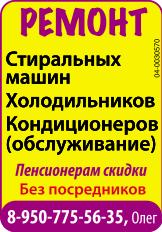 Ремонт стиральных машин, холодильников, кондиционеров (обслуживание). Пенсионерам скидки. Без посредников.
