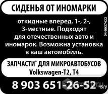 Сиденья от иномарки откидные вперед, 1-, 2-, 3-местные. Подходят для отечественных авто и иномарок. Возможна установка в ваш автомобиль. Запчасти* для микроавтобусов Volkswagen-T2, T4. *Б/у.
