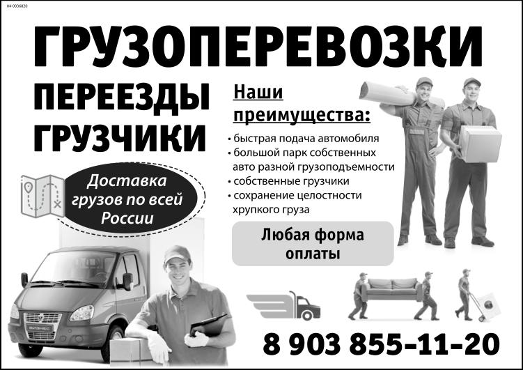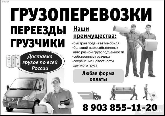 Грузоперевозки, переезды, грузчики. Наши преимущества: быстрая подача автомобиля, большой парк собственных автомобилей разной грузоподъемности, собственные грузчики, сохранение целостности хрупкого груза. Доставка грузов по всей России. Любая форма оплаты.