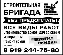 Строительная бригада. Без предоплаты. Все виды работ. Строительство домов, дач со своим материалом. Ремонт крыш. Пенсионерам скидка.