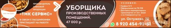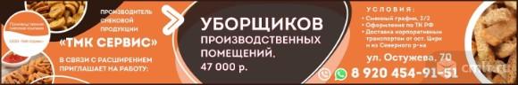 Производитель снековой продукции ТМК Сервис в связи с расширением приглашает на работу уборщика производственных помещений, зарплата 47 тыс. р. Условия: график 5/2, оформление по ТК РФ, доставка корпоративным транспортом от ост. Цирк и из Северного района.