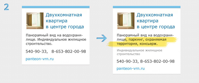 Теперь каждое объявление будет располагаться в своем отдельном блоке. Для телефонов будет отведено специальное поле, а в тексте освободится место для важной информации. При этом телефоны будут написаны крупнее основного текста. Адрес сайта тоже станет заметнее.