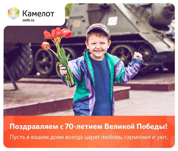 Дорогие друзья! Компания Камелот от всей души поздравляет вас с 70-летием Великой Победы! В этот праздничный день график работы некоторых отделов будет изменен: