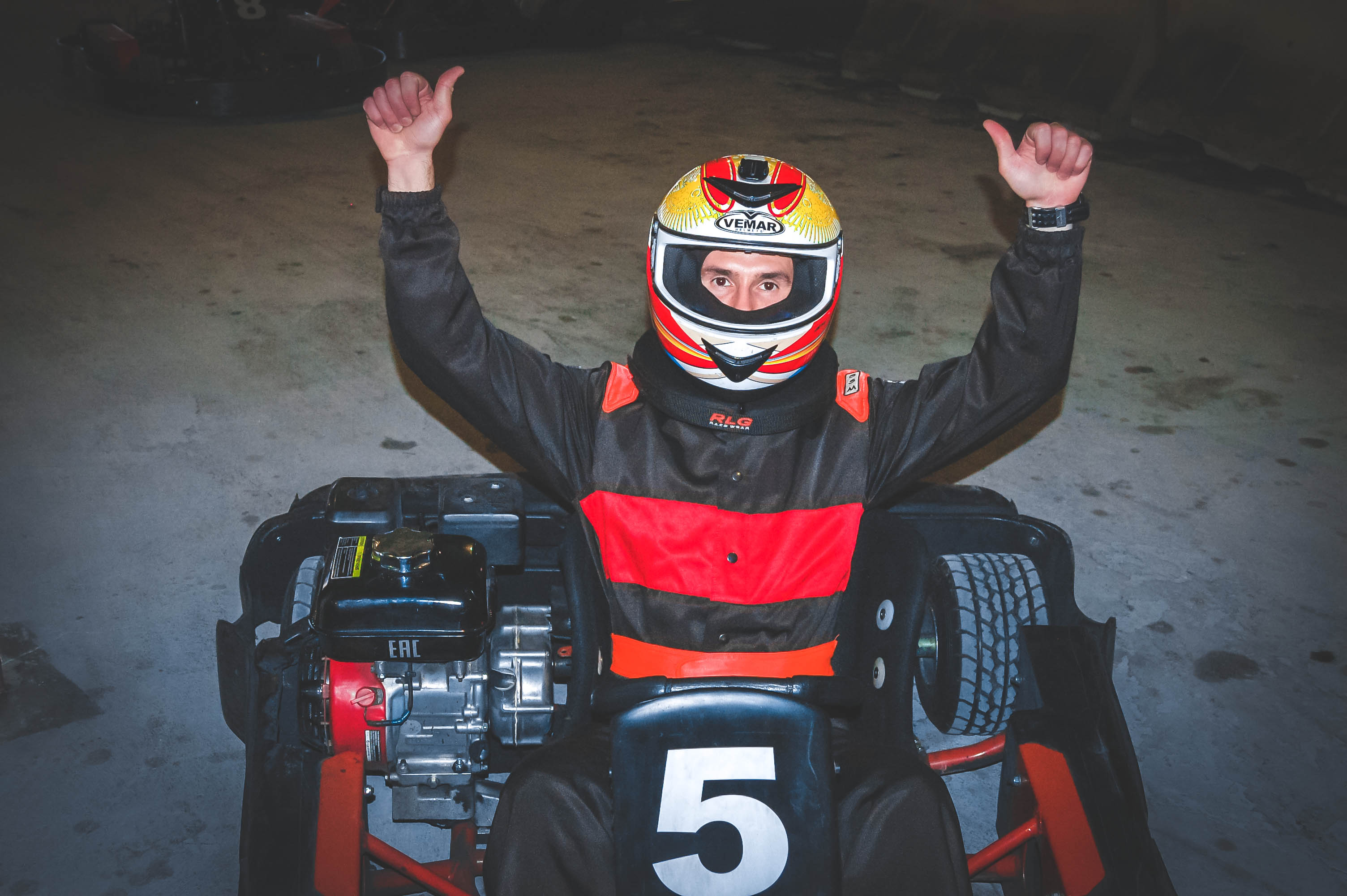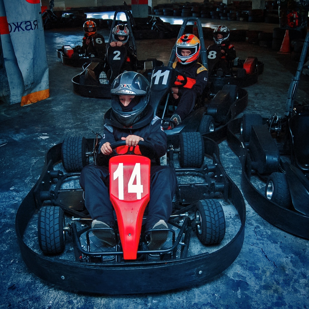 Выбор из 17 болидов разной мощности (6,5 и 9 л. с.), в том числе детских, а также уникальный двухместный карт.