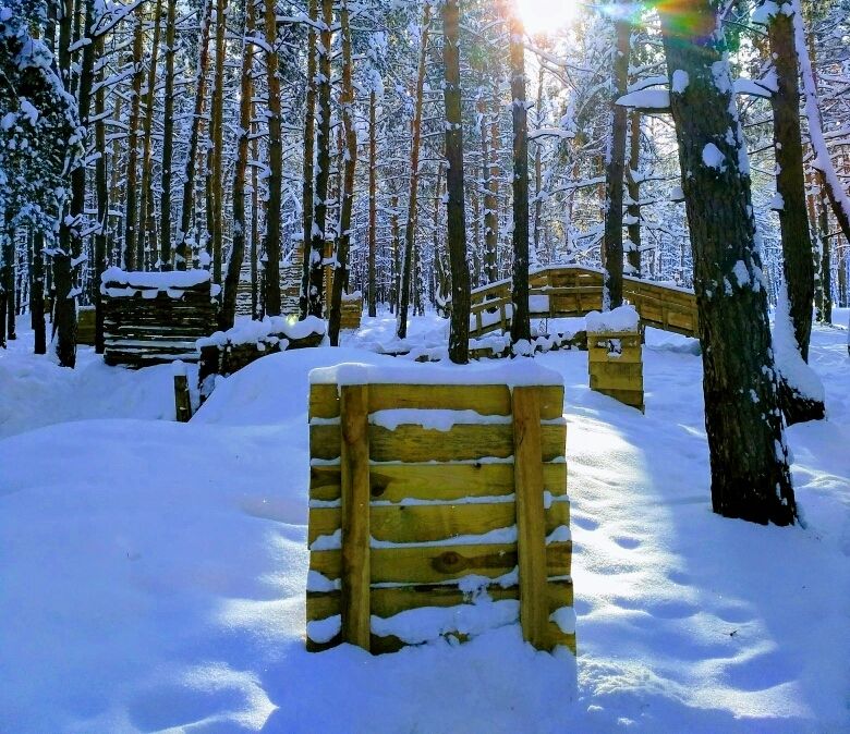 Игра на свежем воздухе укрепляет командный дух — это вам не пыль по углам гонять! Огромный полигон с разными укрытиями добавит реалистичности и интереса. Есть закрытые и тёплые помещения, где участники и сопровождающие смогут переодеться, отдохнуть и перекусить.