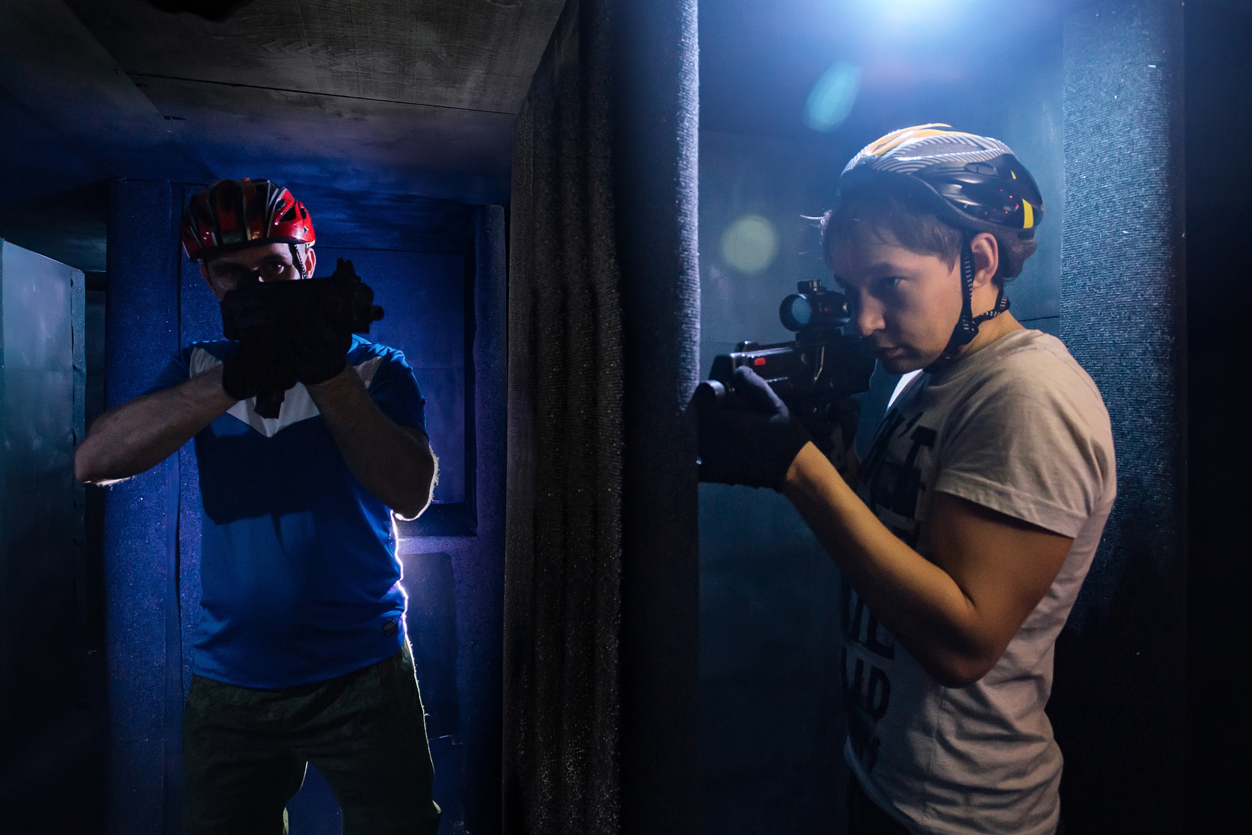 Оружие лазертаг технологичное и абсолютно безопасное. Играть могут дети от 7 лет . В зависимости от стиля игры и роли в команде каждый участник сам выбирает подходящее снаряжении — от пистолета до снайперской винтовки. Попадание и урон фиксируется электроникой, так что не придётся кричать: «Падай, я в тебя попал!», — оружие выбывшего автоматически отключится.