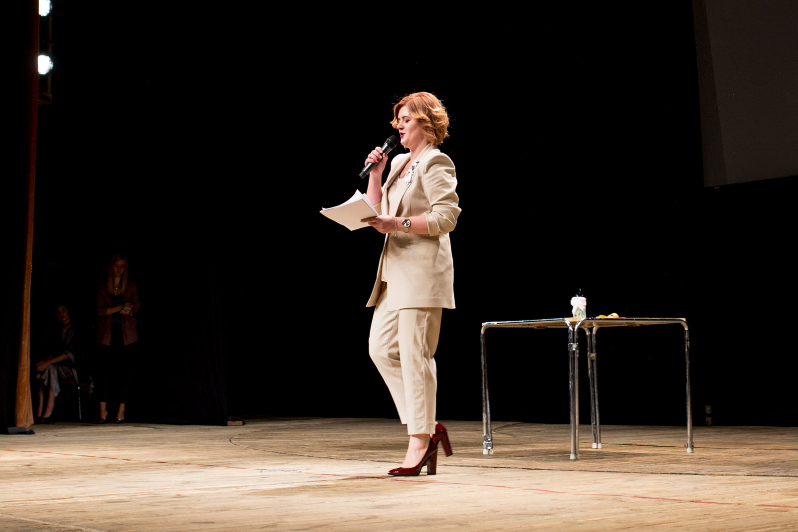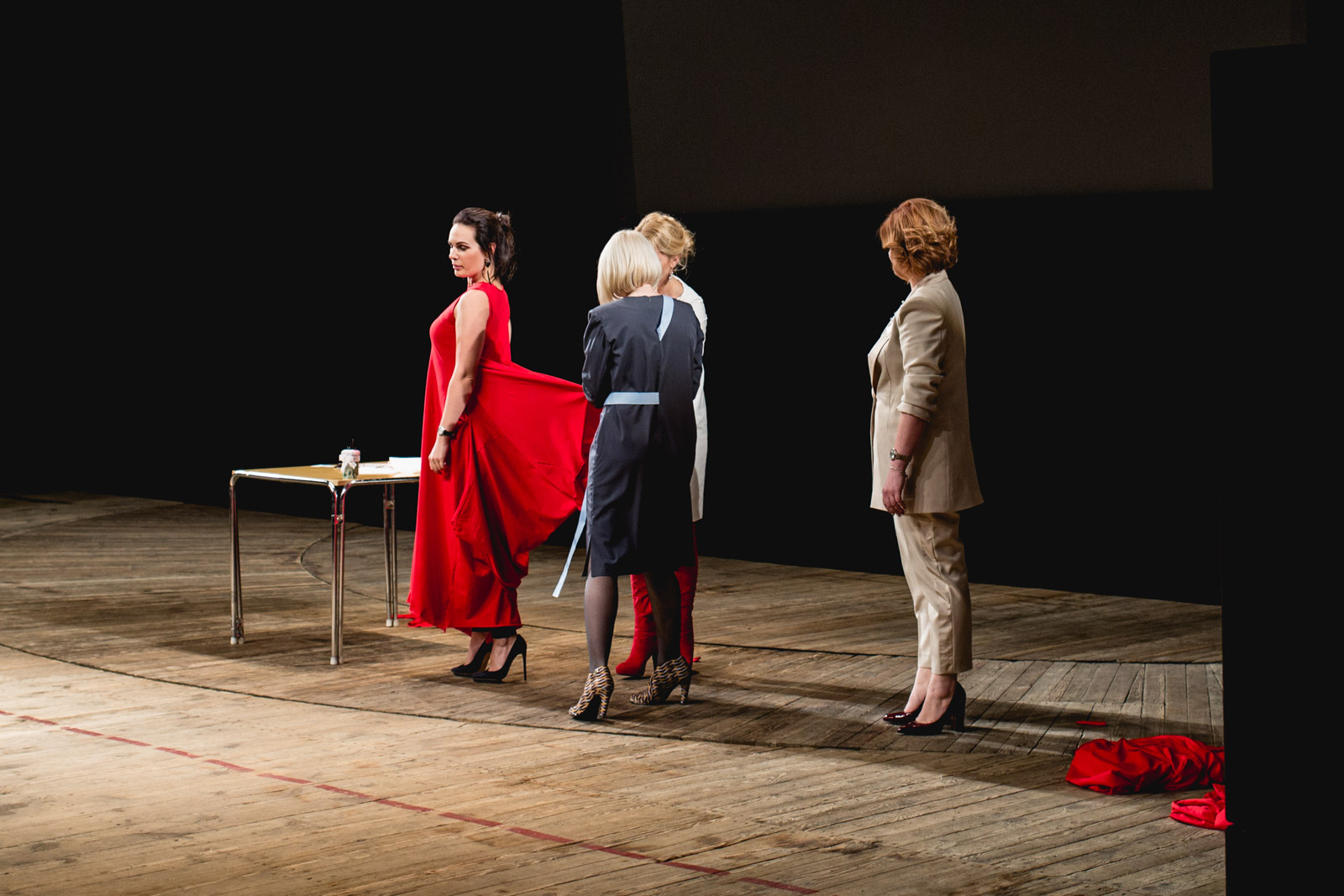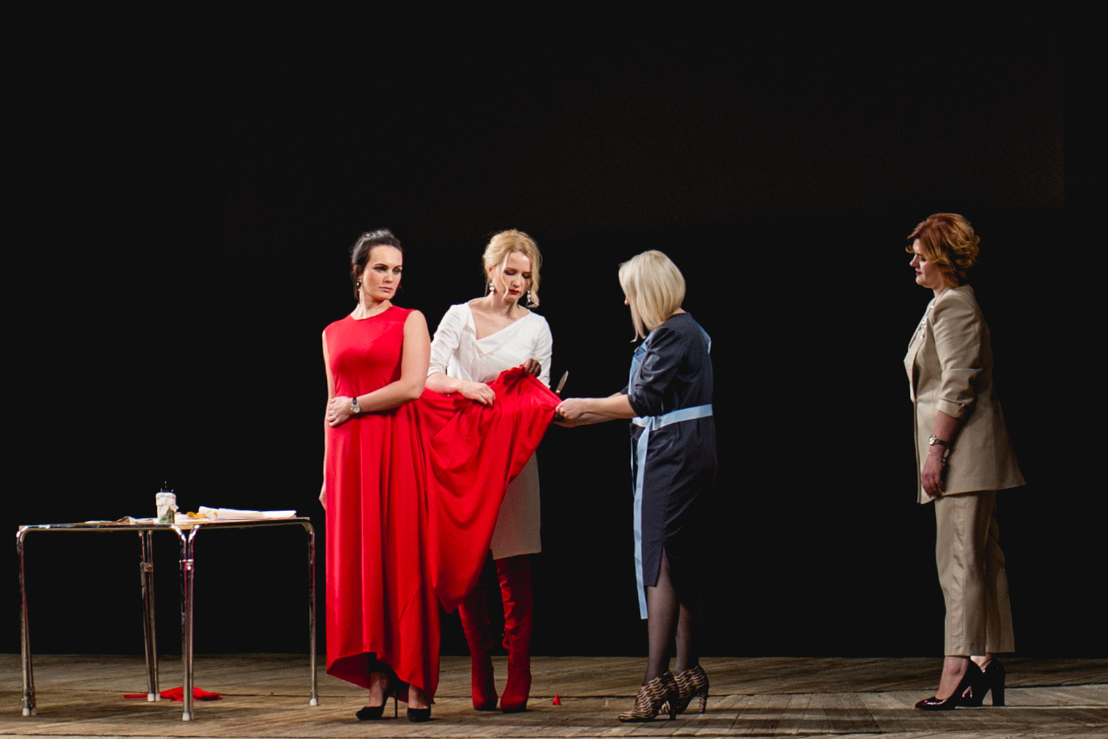 Одной из частей программы стал любопытный мастер-класс. На сцену вышли портные и модели. За 20 минут мастерам предстояло снять мерки, сделать выкройку и сшить платье. Задача сложная, однако методика, по которой они делали выкройки, настолько универсальна, что по истечении 20 минут портные успели продемонстрировать целых 20 вариантов того, как можно носить наряд. Судите сами. Впрочем, 19 из 20 вариантов — больше для шоу, чем для реального выхода. Так что в конце представления девушки просто обрезали длинный подол: получилось классическое платье на каждый день с рваными краями чуть выше колена.