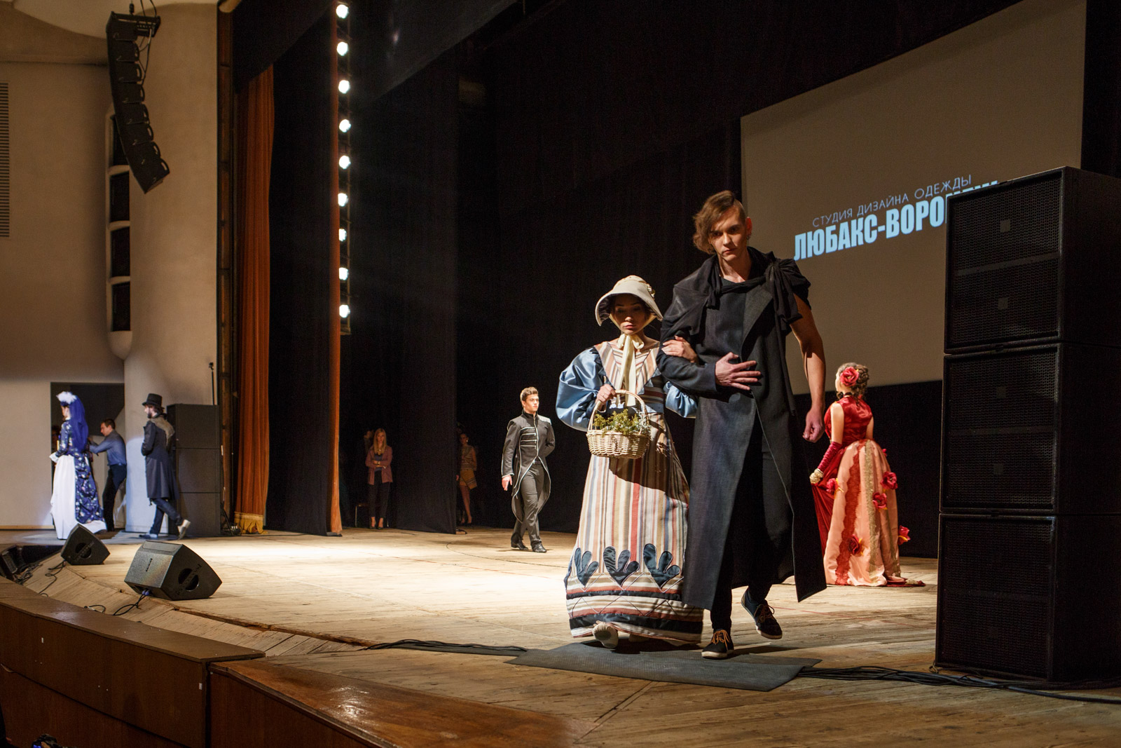 По словам Надежды Тупикиной, руководителя студии «ЛюбАкс-Воронеж», к этому показу команда готовилась целый год: «Через исторический костюм мы хотим показать связь исторических эпох. Шить может научиться каждый — это не такая уж тяжелая наука. А вот создавать историю своим костюмам могут единицы».Костюмы для первой части шоу представляли собой одежду разных социальных классов русского общества XV-XVII веков: князей и бояр, крестьян и помещиков. Надежда так это прокомментировала: «Многие ученики спрашивают нас, почему мы занимаемся дизайном исторического и народного костюма. Мы отвечаем, что все великие дизайнеры пользовались опытом предыдущих поколений и народных мастеров».
