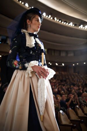 Вторую часть шоу посвятили показу современного костюма, а точнее, коллекции нарядов прет-а-порте «осень-зима — 2017». Все наряды дополняли элементы исторического платья — это подчеркивало связь эпох.